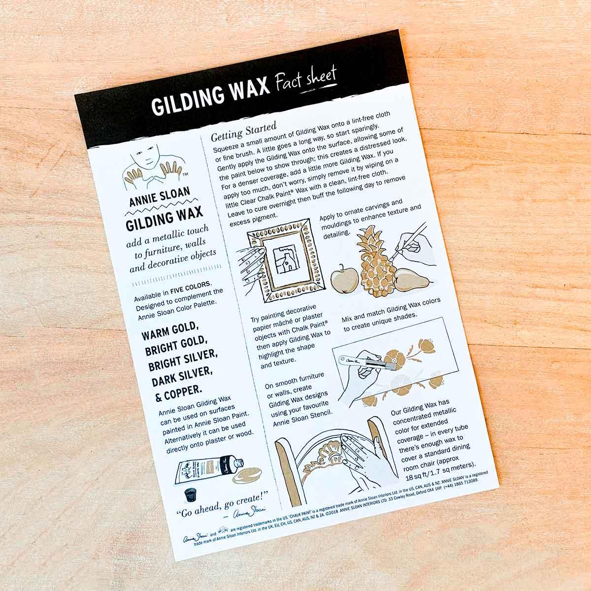 Add a metallic touch to your painted furniture with Annie Sloan Gilding Wax. Apply to ornate carvings and moldings to enhance texture and detailing, or use with your favorite Annie Sloan Stencil to create gilded shapes, lines and designs. Can be applied with a lint-free cloth or a brush.
