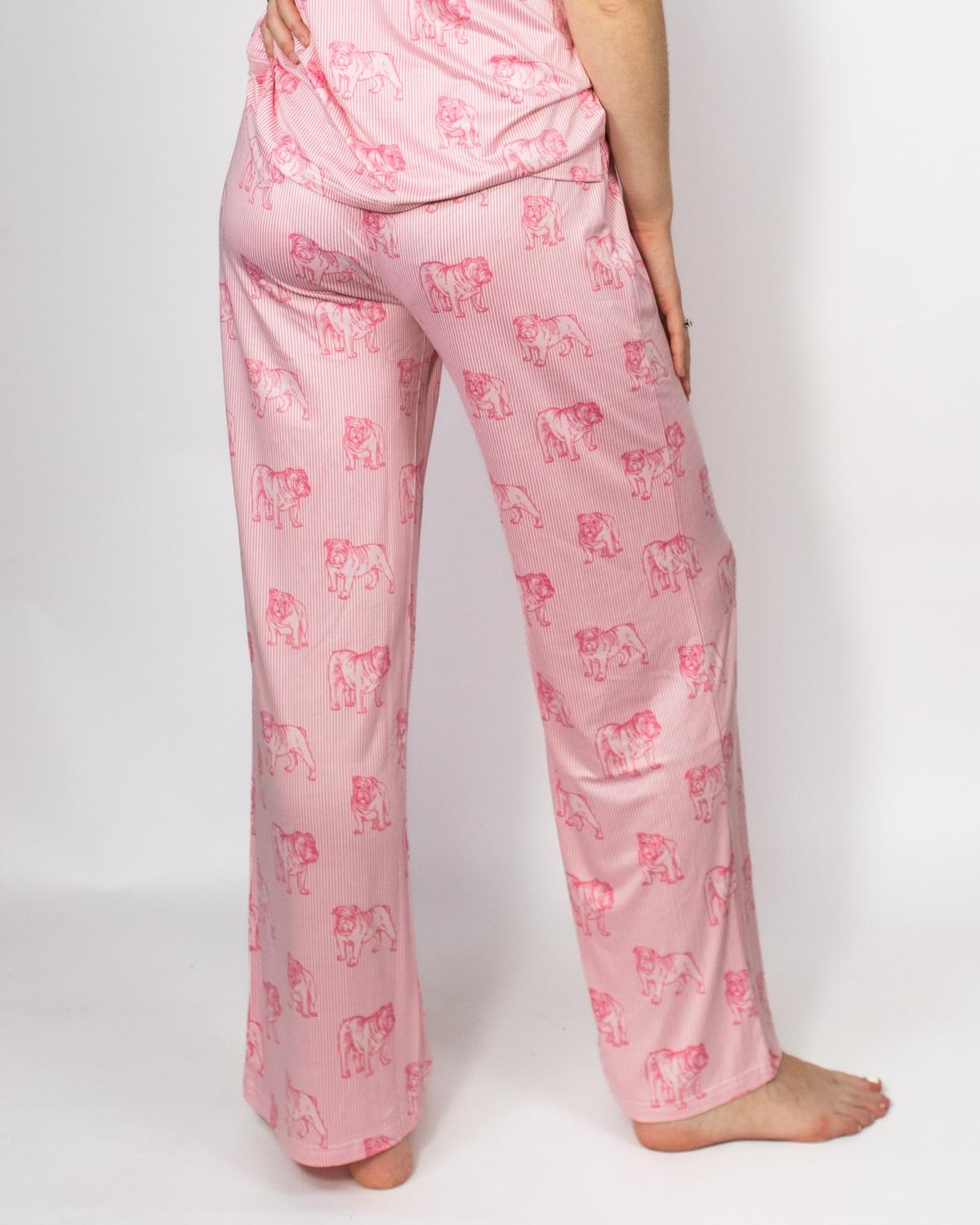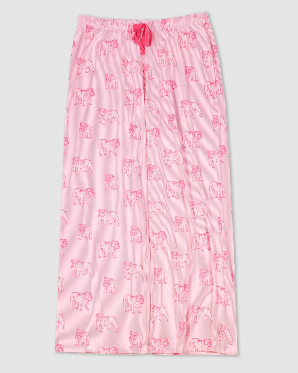 Bulldog Stare Sleep Pants #: 273253121-P $31.00 Quantity discounts available QuantityPrice (0)No Reviews yet Ship 2 Available Pickup in Store - FREE! Select Store to check availability. In Stock Size : Medium Large XLarge 2XLarge Gift Certificate Amount Is Variable Amount Line Item Is Variable Amount Item Options Gift Wrap Id Gift Wrap - Message From Gift Wrap - Message Text Gift Wrap - Message To Gift Wrap Item : 99-L Gift Wrap - Large 99-M Gift Wrap - Medium 99-S Gift Wrap - Small GiftMessage Gift Message Planning to give this as a gift?Add Gift Wrap or FREE Gift Messaging! Quantity -+ Add to Shopping Cart Care Machine Wash Cold & Tumble Dry Low Dimensions N/A Material Polyester & Spandex Detailed Description Get game day ready with the Bulldog Stare Sleep Pants in pink and light pink. Comfortable and spirited, these sleep pants are perfect for showing Geor... CareDimensionsMaterialDetailed Description Back Machine Wash Cold & Tumble Dry Low Back N/A Back Polyester & Spandex Back Get game day ready with the Bulldog Stare Sleep Pants in pink and light pink. Comfortable and spirited, these sleep pants are perfect for showing Georgia pride while relaxing or sleeping. Reviews 0 Back Ratings & ReviewsNo reviews availableBe the first to Write a Review