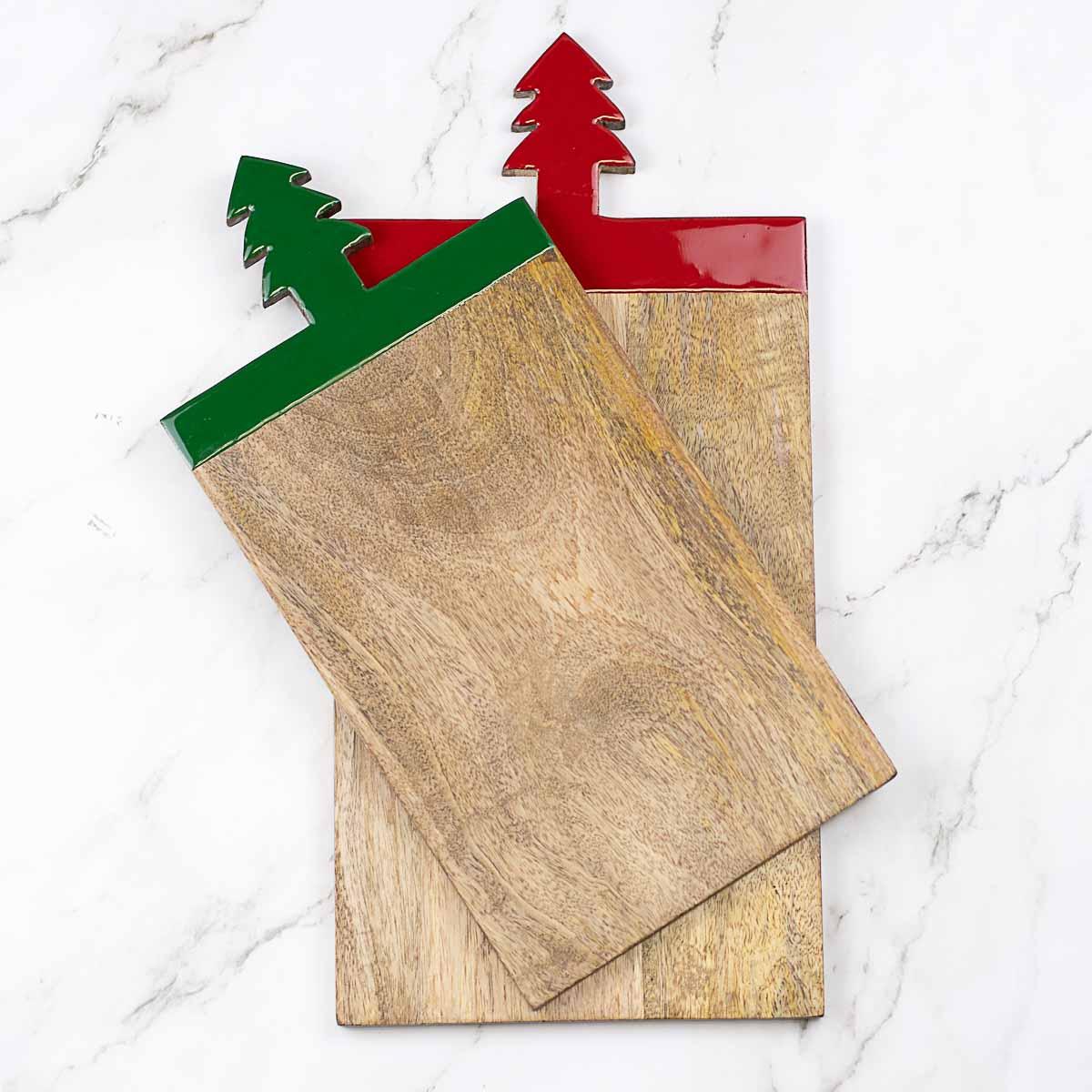 Christmas Tree Handle Serving Board in Red #: 142624005 $29.40 $42.00 Quantity discounts available QuantityPrice (0)No Reviews yet Ship 136 Available Pickup in Store - FREE! Select Store to check availability. In Stock Gift Certificate Amount Is Variable Amount Line Item Is Variable Amount Item Options Gift Wrap Id Gift Wrap - Message From Gift Wrap - Message Text Gift Wrap - Message To Gift Wrap Item : 99-L Gift Wrap - Large 99-M Gift Wrap - Medium 99-S Gift Wrap - Small GiftMessage Gift Message Planning to give this as a gift?Add Gift Wrap or FREE Gift Messaging! Quantity -+ Add to Shopping Cart Care Wipe with soft dry cloth Dimensions 17.99" w X 8.5" h X 0.75" d Material Mango Wood Detailed Description Entertain in style with our beautiful line of holiday dinnerware, serving pieces, linens and entertaining accessories! CareDimensionsMaterialDetailed Description Back Wipe with soft dry cloth Back 17.99" w X 8.5" h X 0.75" d Back Mango Wood Back Entertain in style with our beautiful line of holiday dinnerware, serving pieces, linens and entertaining accessories! Reviews 0 Back Ratings & ReviewsNo reviews availableBe the first to Write a Review