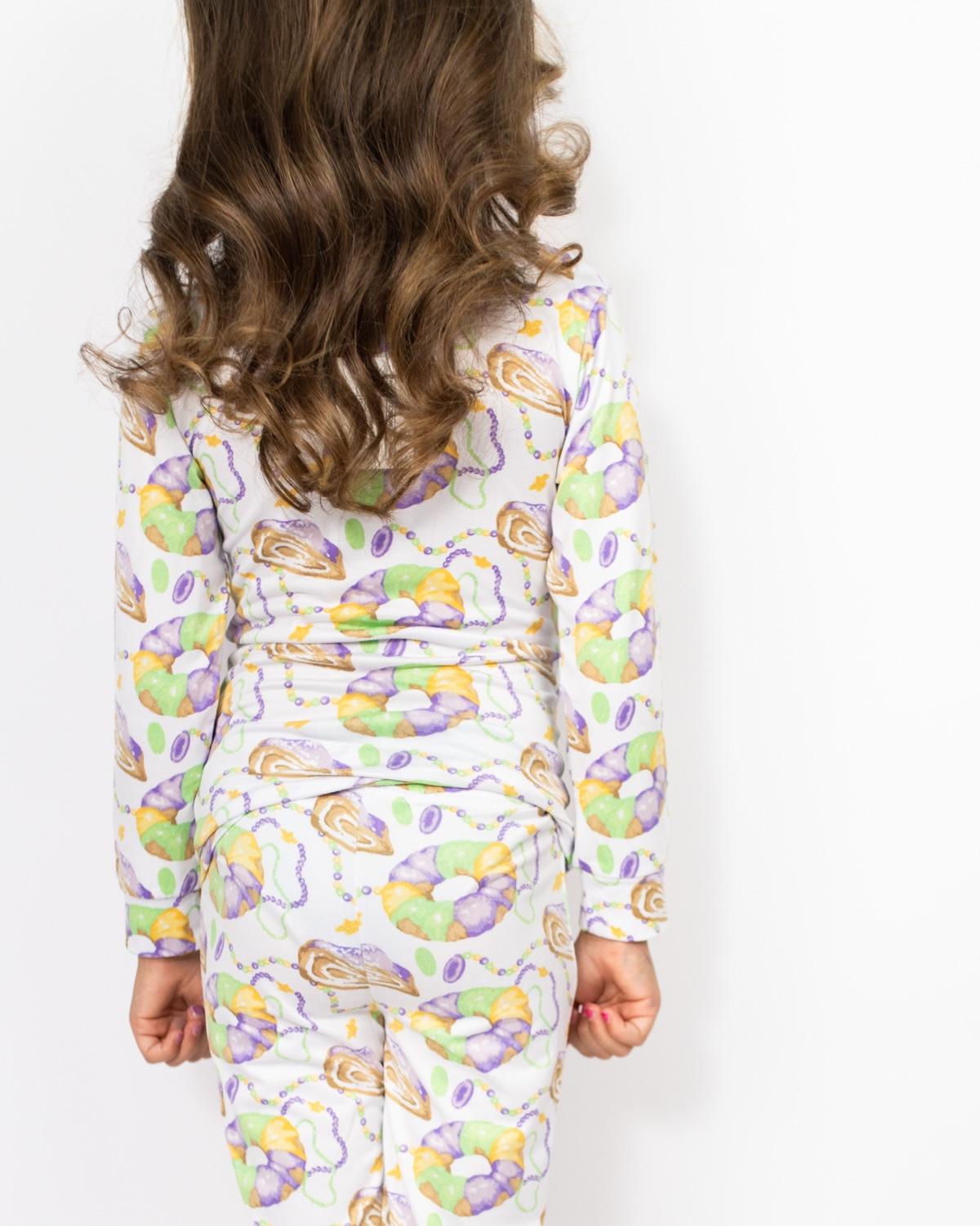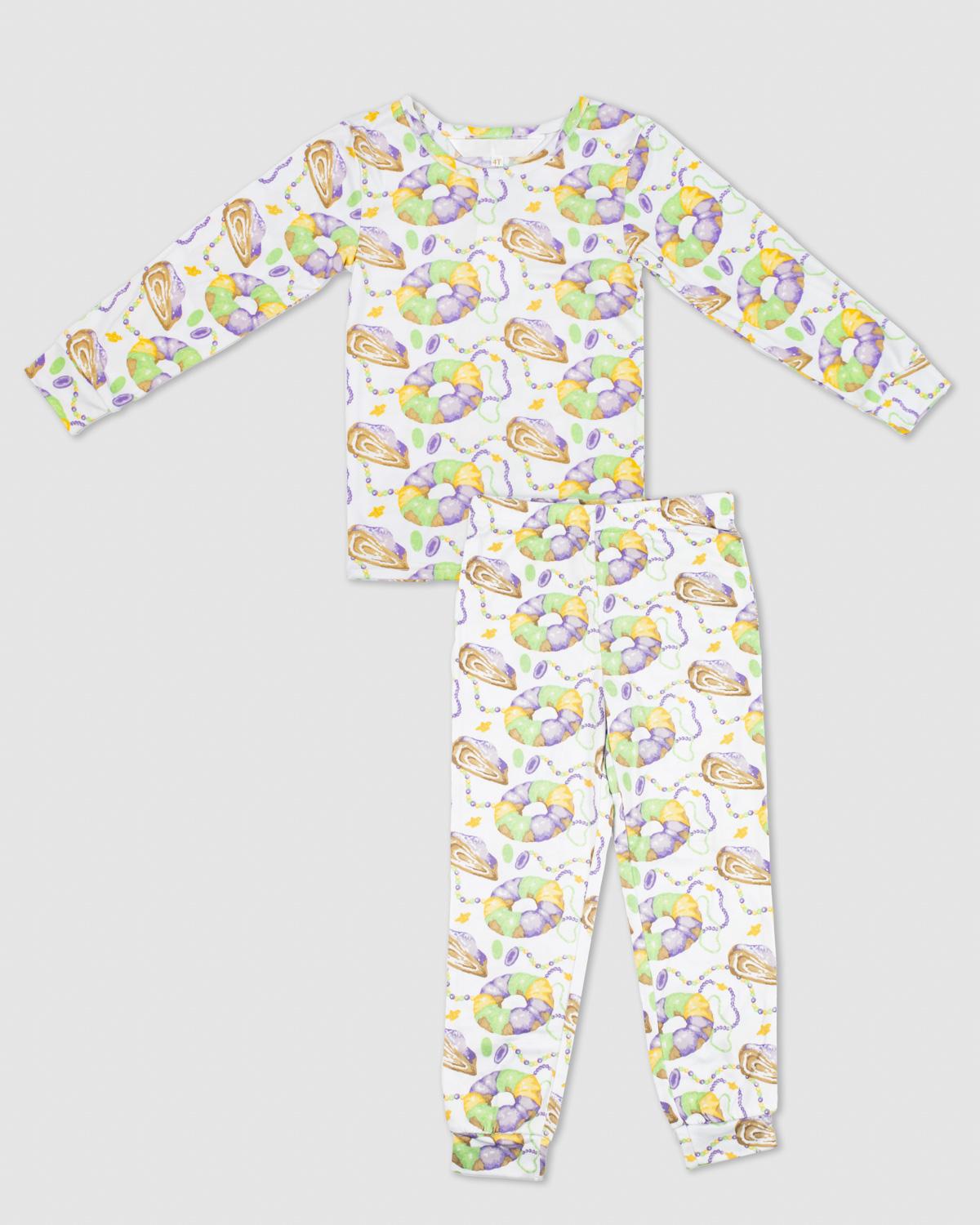 Kid's King Cake Love Long Sleeve Pajamas #: 273260096-P $33.00 Quantity discounts available QuantityPrice (0)No Reviews yet Ship 1 Available Pickup in Store - FREE! Select Store to check availability. In Stock Select options Back $33.00 Size : 3T 4T 5T 6 2T Gift Certificate Amount Is Variable Amount Line Item Is Variable Amount Item Options Gift Wrap Id Gift Wrap - Message From Gift Wrap - Message Text Gift Wrap - Message To Gift Wrap Item : 99-L Gift Wrap - Large 99-M Gift Wrap - Medium 99-S Gift Wrap - Small GiftMessage Gift Message Planning to give this as a gift?Add Gift Wrap or FREE Gift Messaging! Quantity -+ Add to Shopping Cart Care Machine Wash Gentle Cycle, Tumble Dry Low, Do Not Iron Dimensions N/A Material Polyester & Spandex Detailed Description These playful King Cake Love pajamas bring festive fun to bedtime with a vibrant Mardi Gras-inspired design, perfect for cozy nights and joyful dreams... CareDimensionsMaterialDetailed Description Back Machine Wash Gentle Cycle, Tumble Dry Low, Do Not Iron Back N/A Back Polyester & Spandex Back These playful King Cake Love pajamas bring festive fun to bedtime with a vibrant Mardi Gras-inspired design, perfect for cozy nights and joyful dreams. Reviews 0 Back Ratings & ReviewsNo reviews availableBe the first to Write a Review