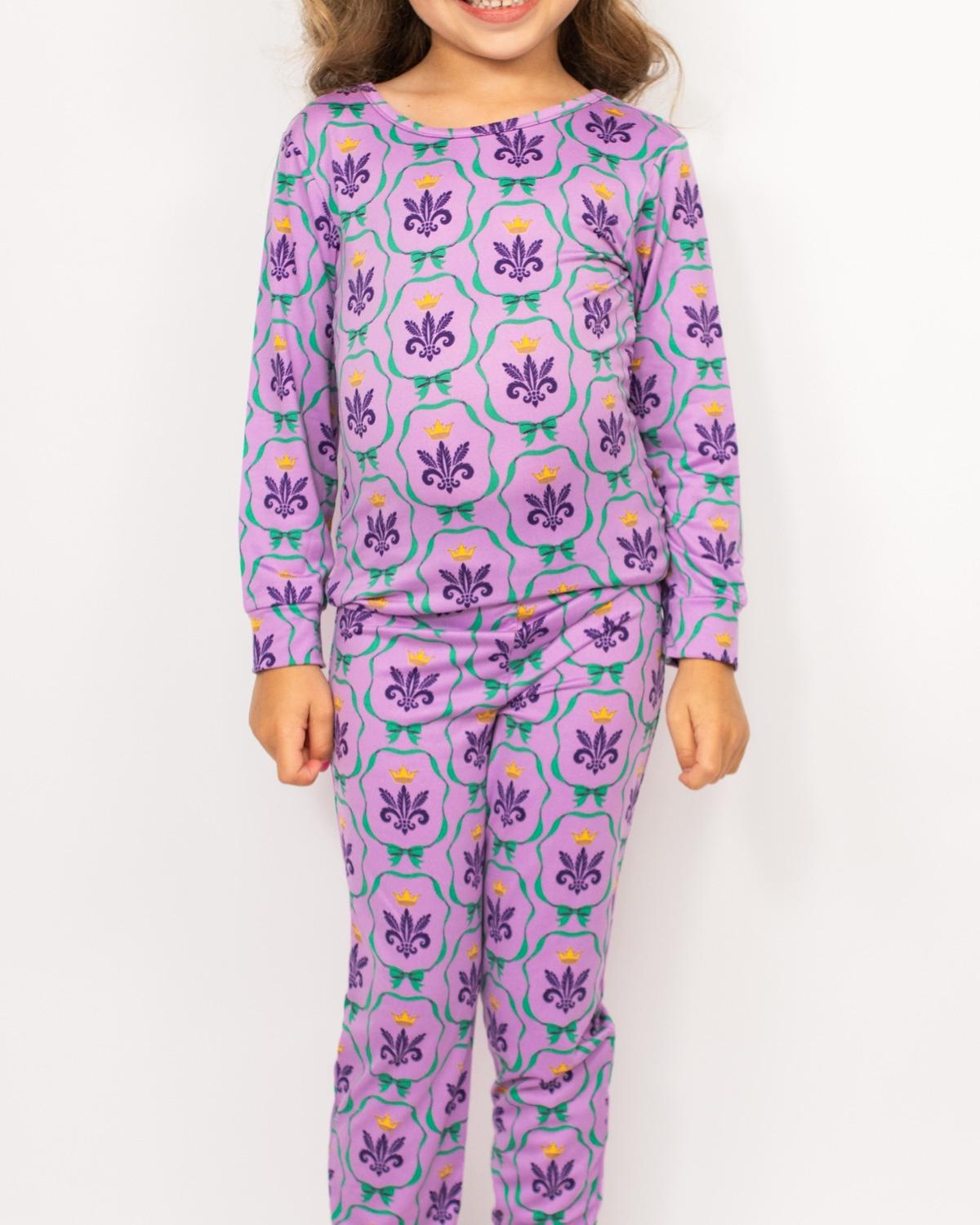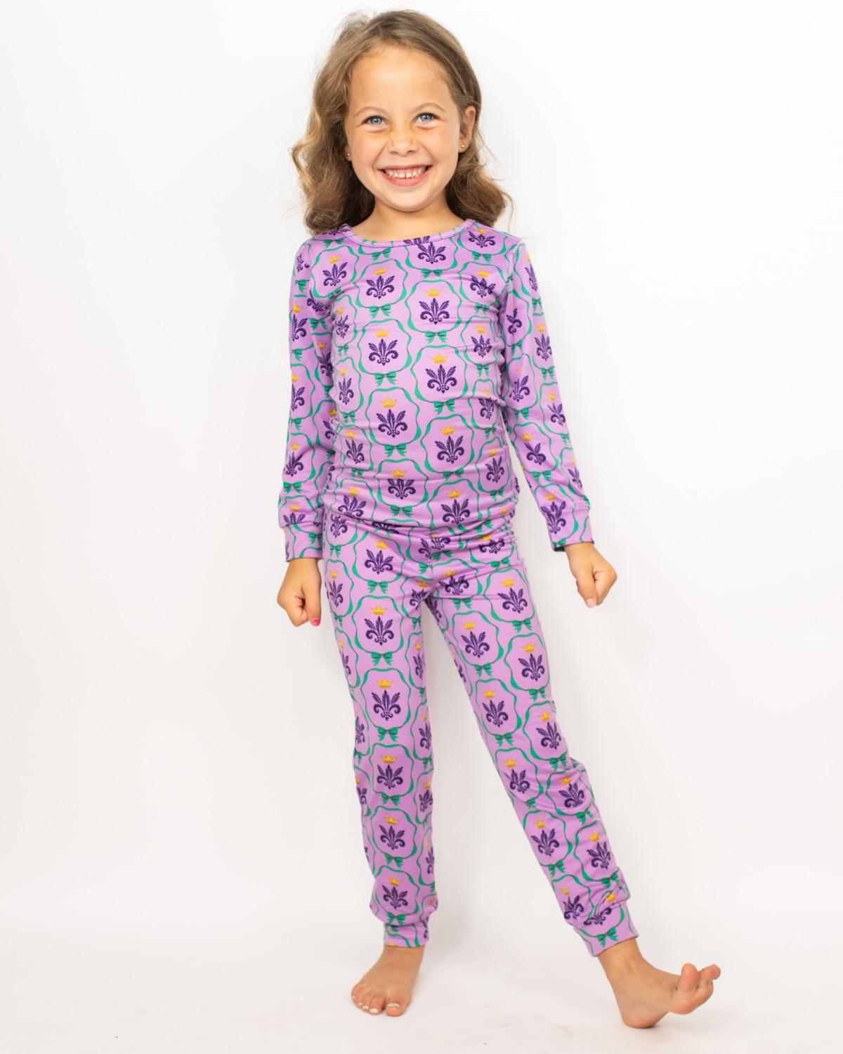 Kid's Mardi Bow Long Sleeve Pajamas #: 273260125-P $33.00 Quantity discounts available QuantityPrice (0)No Reviews yet Ship 1 Available Pickup in Store - FREE! Select Store to check availability. In Stock Select options Back $33.00 Size : 3T 4T 5T 6 2T Gift Certificate Amount Is Variable Amount Line Item Is Variable Amount Item Options Gift Wrap Id Gift Wrap - Message From Gift Wrap - Message Text Gift Wrap - Message To Gift Wrap Item : 99-L Gift Wrap - Large 99-M Gift Wrap - Medium 99-S Gift Wrap - Small GiftMessage Gift Message Planning to give this as a gift?Add Gift Wrap or FREE Gift Messaging! Quantity -+ Add to Shopping Cart Care Machine Wash Gentle Cycle, Tumble Dry Low, Do Not Iron Dimensions N/A Material Polyester & Spandex Detailed Description Cozy up for Mardi Gras celebrations in this set of two kid’s long sleeve pajamas featuring the festive Mardi Bow design in light purple and multi colo... CareDimensionsMaterialDetailed Description Back Machine Wash Gentle Cycle, Tumble Dry Low, Do Not Iron Back N/A Back Polyester & Spandex Back Cozy up for Mardi Gras celebrations in this set of two kid’s long sleeve pajamas featuring the festive Mardi Bow design in light purple and multi colors. Reviews 0 Back Ratings & ReviewsNo reviews availableBe the first to Write a Review