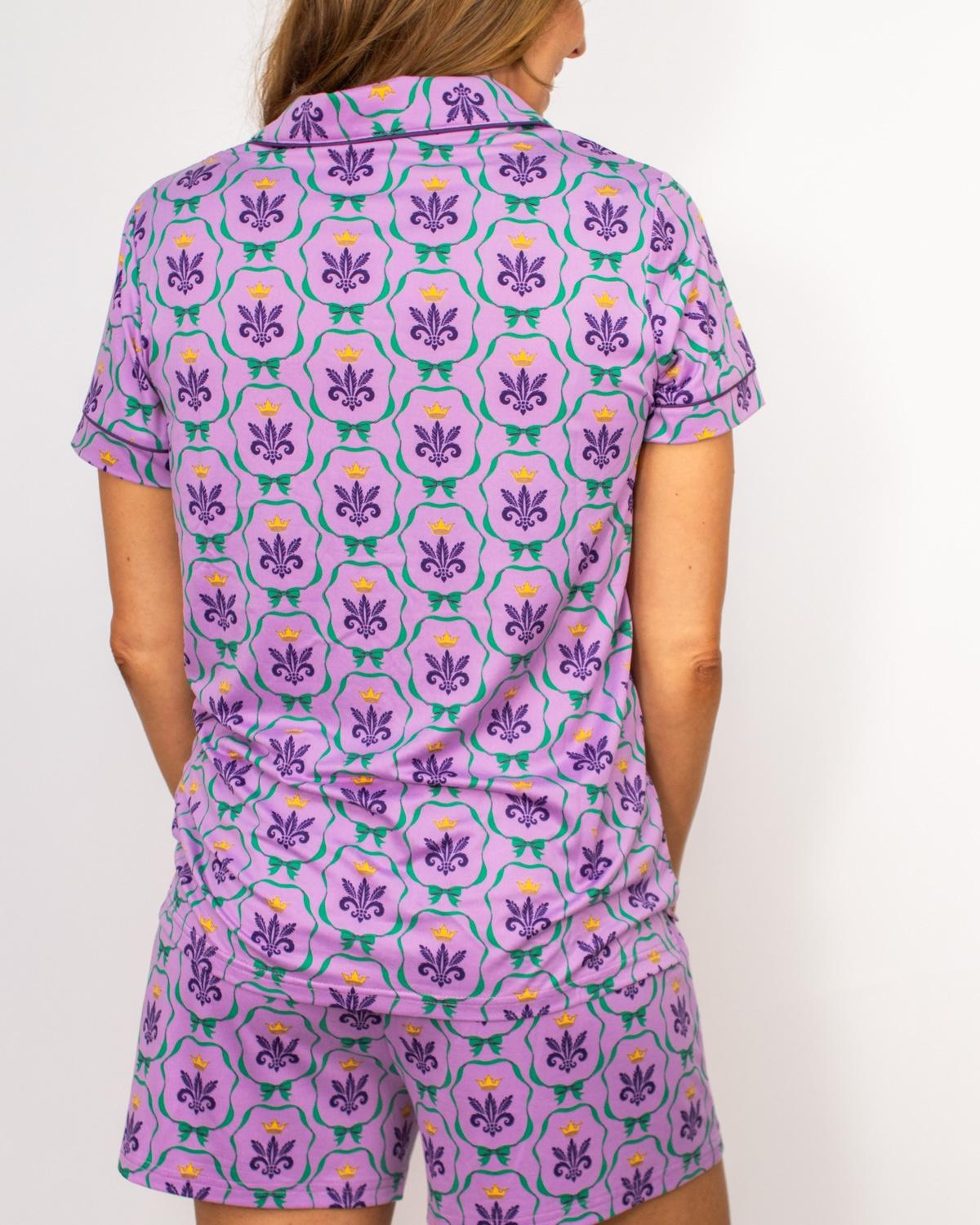 Mardi Bow Short Sleeve Button Up Sleep Shirt #: 273260134-P $33.00 Quantity discounts available QuantityPrice (0)No Reviews yet Ship 1 Available Pickup in Store - FREE! Select Store to check availability. In Stock Select options Back $33.00 Size : XSmall Small Medium Large XLarge 2XLarge Gift Certificate Amount Is Variable Amount Line Item Is Variable Amount Item Options Gift Wrap Id Gift Wrap - Message From Gift Wrap - Message Text Gift Wrap - Message To Gift Wrap Item : 99-L Gift Wrap - Large 99-M Gift Wrap - Medium 99-S Gift Wrap - Small GiftMessage Gift Message Planning to give this as a gift?Add Gift Wrap or FREE Gift Messaging! Quantity -+ Add to Shopping Cart Care Machine Wash Gentle Cycle, Tumble Dry Low, Do Not Iron Dimensions N/A Material Polyester & Spandex Detailed Description Relax in style with this light purple and multi-colored Mardi Bow short sleeve button-up sleep shirt, perfect for cozy nights and festive lounging. CareDimensionsMaterialDetailed Description Back Machine Wash Gentle Cycle, Tumble Dry Low, Do Not Iron Back N/A Back Polyester & Spandex Back Relax in style with this light purple and multi-colored Mardi Bow short sleeve button-up sleep shirt, perfect for cozy nights and festive lounging. Reviews 0 Back Ratings & ReviewsNo reviews availableBe the first to Write a Review