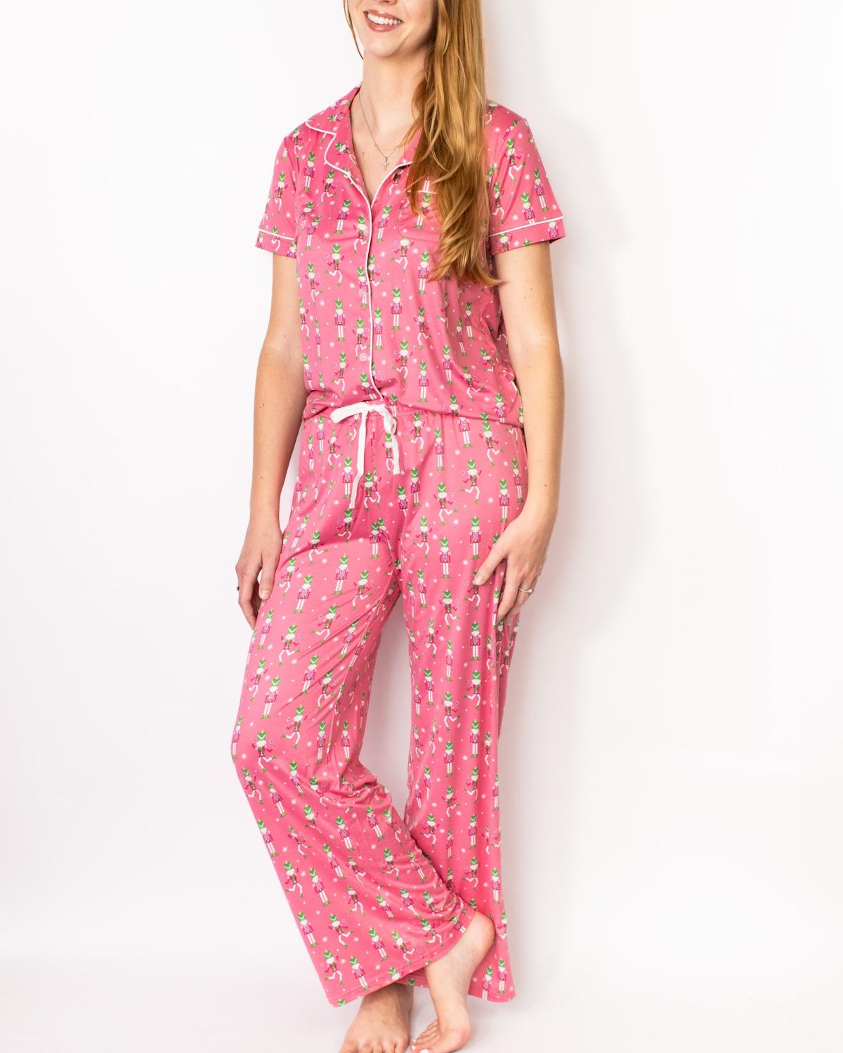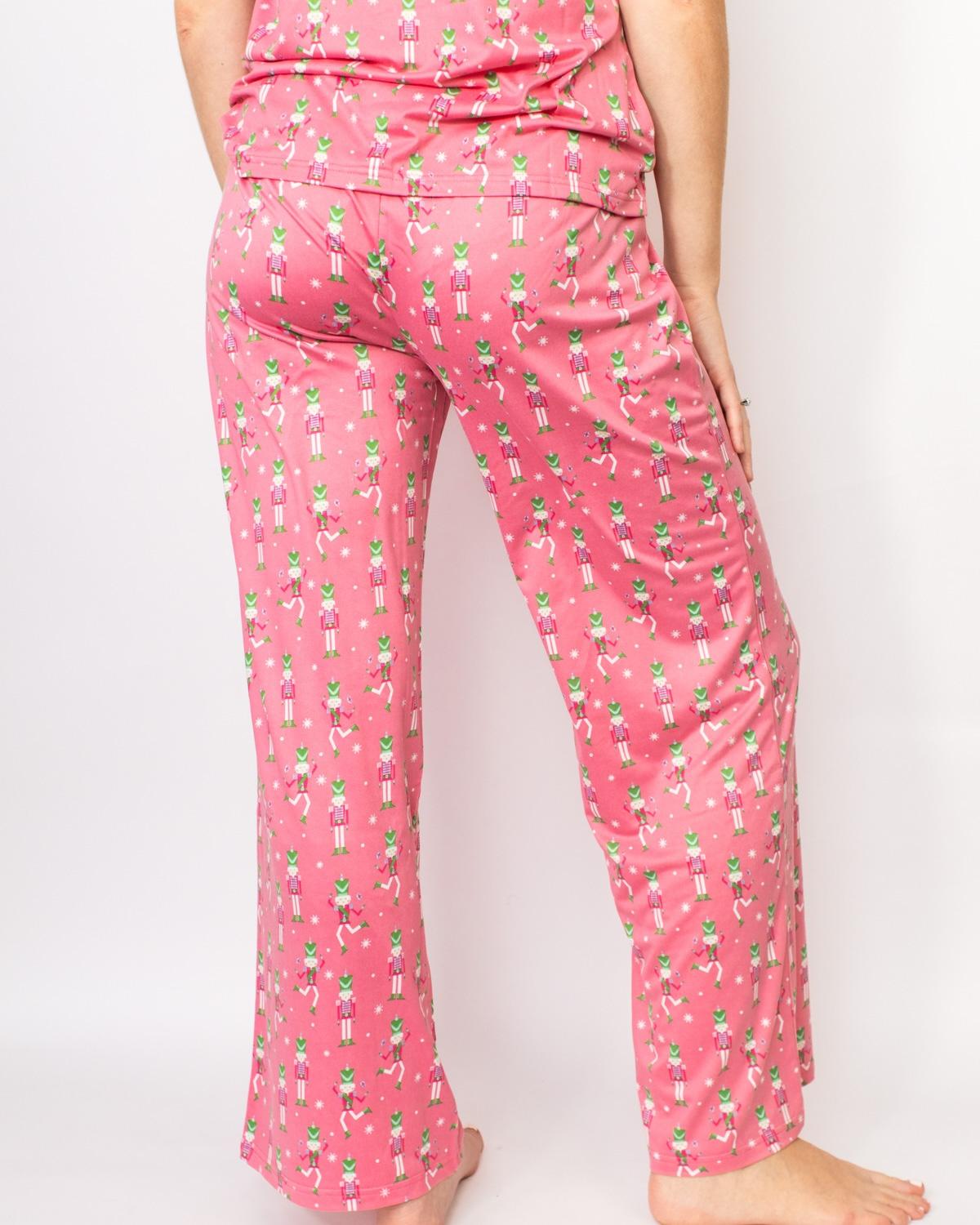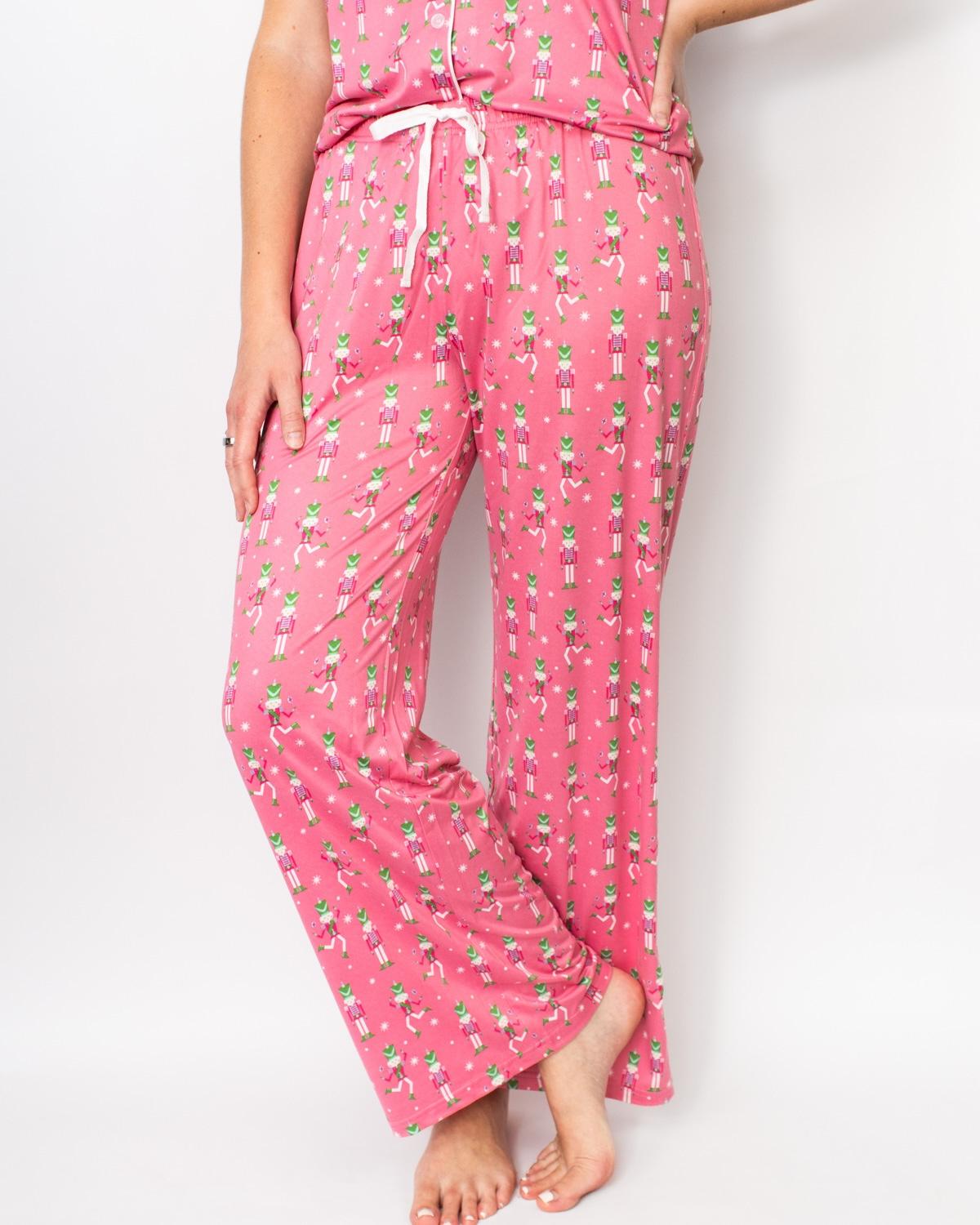 Bring festive cheer to bedtime with our Nutcracker Cutie Sleep Pants. Decorated with a whimsical pink and multi nutcracker print, these comfy pants are perfect for cozy nights, holiday mornings, and everything in between.