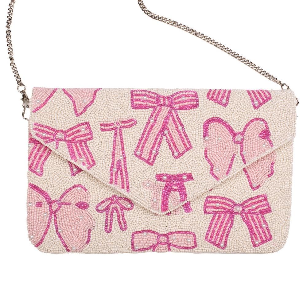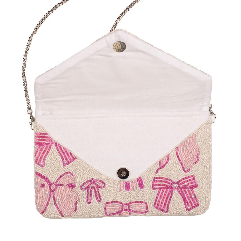 Pearl Bow Beaded Clutch #: 141125003 $78.50 Quantity discounts available QuantityPrice (0)No Reviews yet Ship 87 Available Pickup in Store - FREE! Select Store to check availability. In Stock Gift Certificate Amount Is Variable Amount Line Item Is Variable Amount Item Options Gift Wrap Id Gift Wrap - Message From Gift Wrap - Message Text Gift Wrap - Message To Gift Wrap Item : 99-L Gift Wrap - Large 99-M Gift Wrap - Medium 99-S Gift Wrap - Small GiftMessage Gift Message Planning to give this as a gift?Add Gift Wrap or FREE Gift Messaging! Quantity -+ Add to Shopping Cart Care Spot Clean Only Dimensions 10" w X 6" h Material Cotton Detailed Description Introducing the Pearl Bow Beaded Clutch in Pink/Pearl, a stunning accessory measuring 10x6 inches. This elegant clutch features a beautiful pearl bow ... CareDimensionsMaterialDetailed Description Back Spot Clean Only Back 10" w X 6" h Back Cotton Back Introducing the Pearl Bow Beaded Clutch in Pink/Pearl, a stunning accessory measuring 10x6 inches. This elegant clutch features a beautiful pearl bow design, adding a touch of sophistication to any outfit. Reviews 0 Back Ratings & ReviewsNo reviews availableBe the first to Write a Review